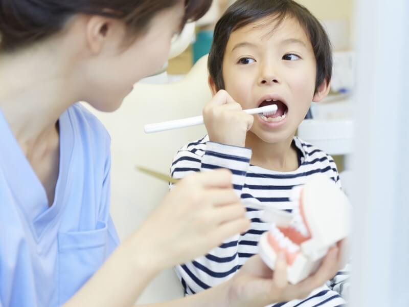 お子さまのむし歯予防は歯磨きはもちろん、親御さんなどの大人が率先して治療を行い、むし歯のないお口をめざすことが大切です。 最終的に健康な永久歯が生え揃うように、乳歯が生え始めた段階から当院がサポートいたします。お子さまの成長段階に合わせた治療を行っておりますので、まずはお気軽にご相談ください。