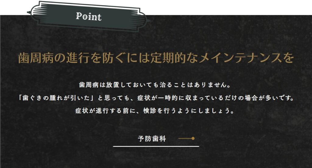 歯周病は毎日の正しい歯磨きなどの予防と早期発見・早期治療が重要です。