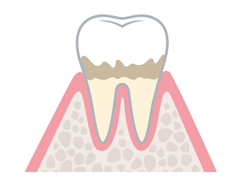 歯肉の溝が深くなり、歯周ポケットが出来ます。歯と歯の間にも隙間が生まれることで、歯石も増えてきます。