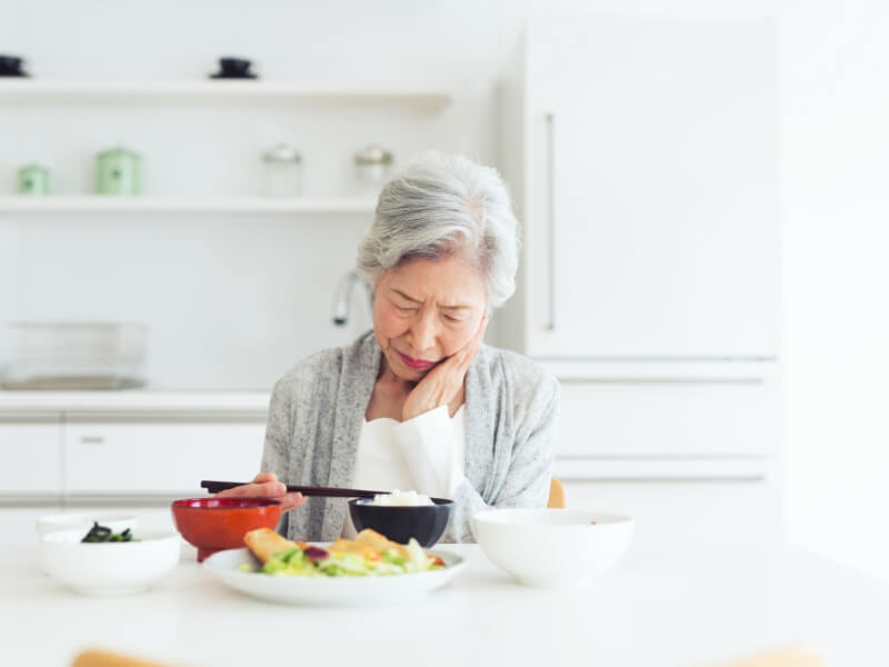 歯周ポケットが進行し、同時に歯を支えている骨も溶けていきます。歯ぐきの知覚過敏により、痛みやしみるなどの自覚症状が強くあらわれます。